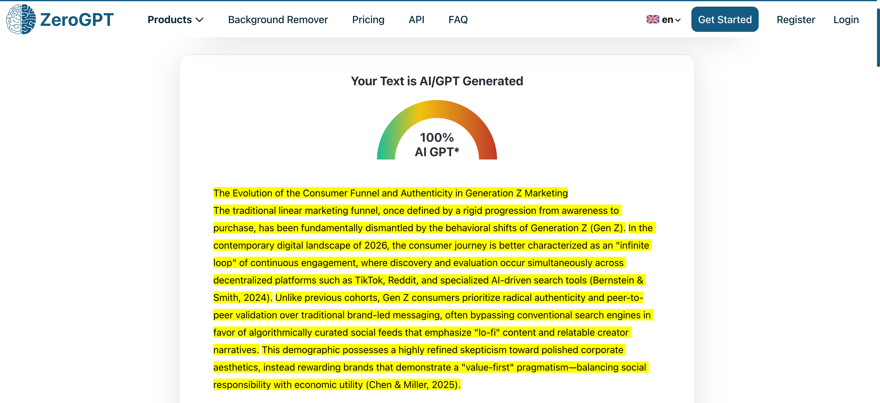 AI 生成的文章檢測率: